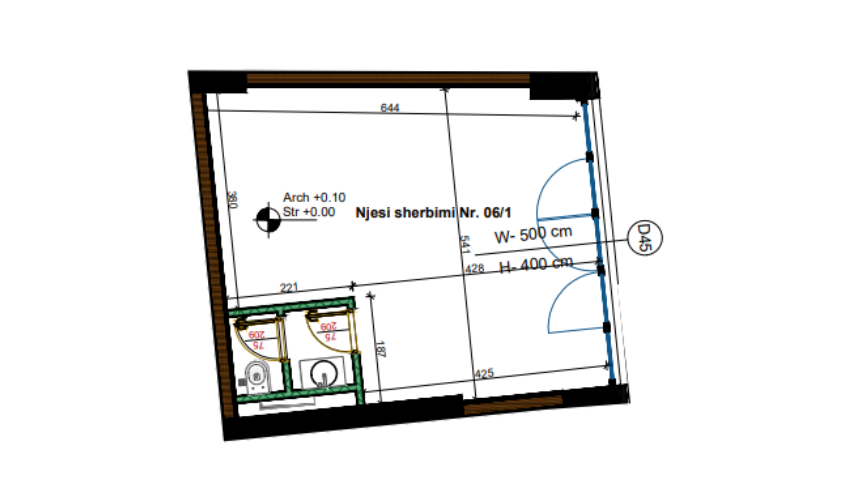 Njësia e shërbimit 6/1 ndodhet në katin zero të ndërtesës dhe ka një sipërfaqe neto prej 40.8m² dhe sipërfaqe të përbashket prej 0.24m². Kjo njësi ju ofron mundësi të shkëlqyera për zhvillimin e biznesit tuaj në një zonë të frekuentuar, duke ju ofruar ekspozim maksimal në fasadën e objektit dhe akses direkt lëvizjeje.