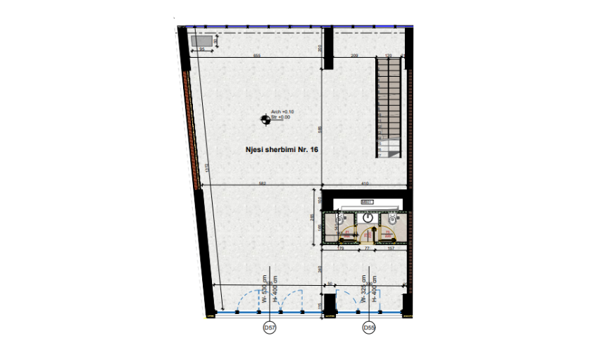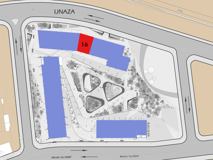 Njësia e shërbimit 16 ndodhet në katin zero të ndërtesës dhe ka një sipërfaqe neto prej 148.98m² dhe sipërfaqe të përbashket prej 0.89m². Kjo njësi ju ofron mundësi të shkëlqyera për zhvillimin e biznesit tuaj në një zonë të frekuentuar, duke ju ofruar ekspozim maksimal në fasadën e objektit dhe akses direkt lëvizjeje.