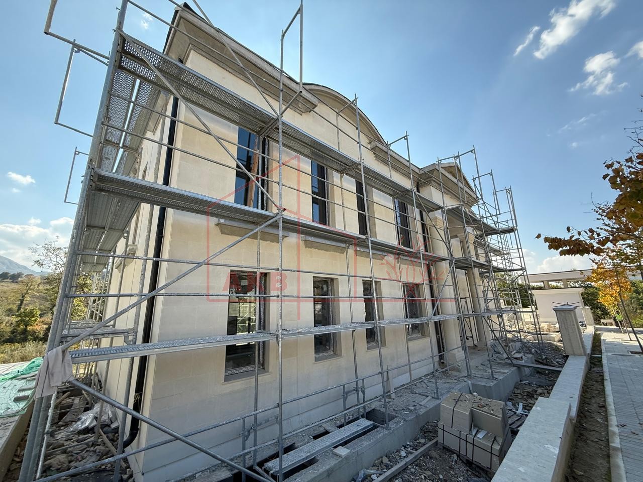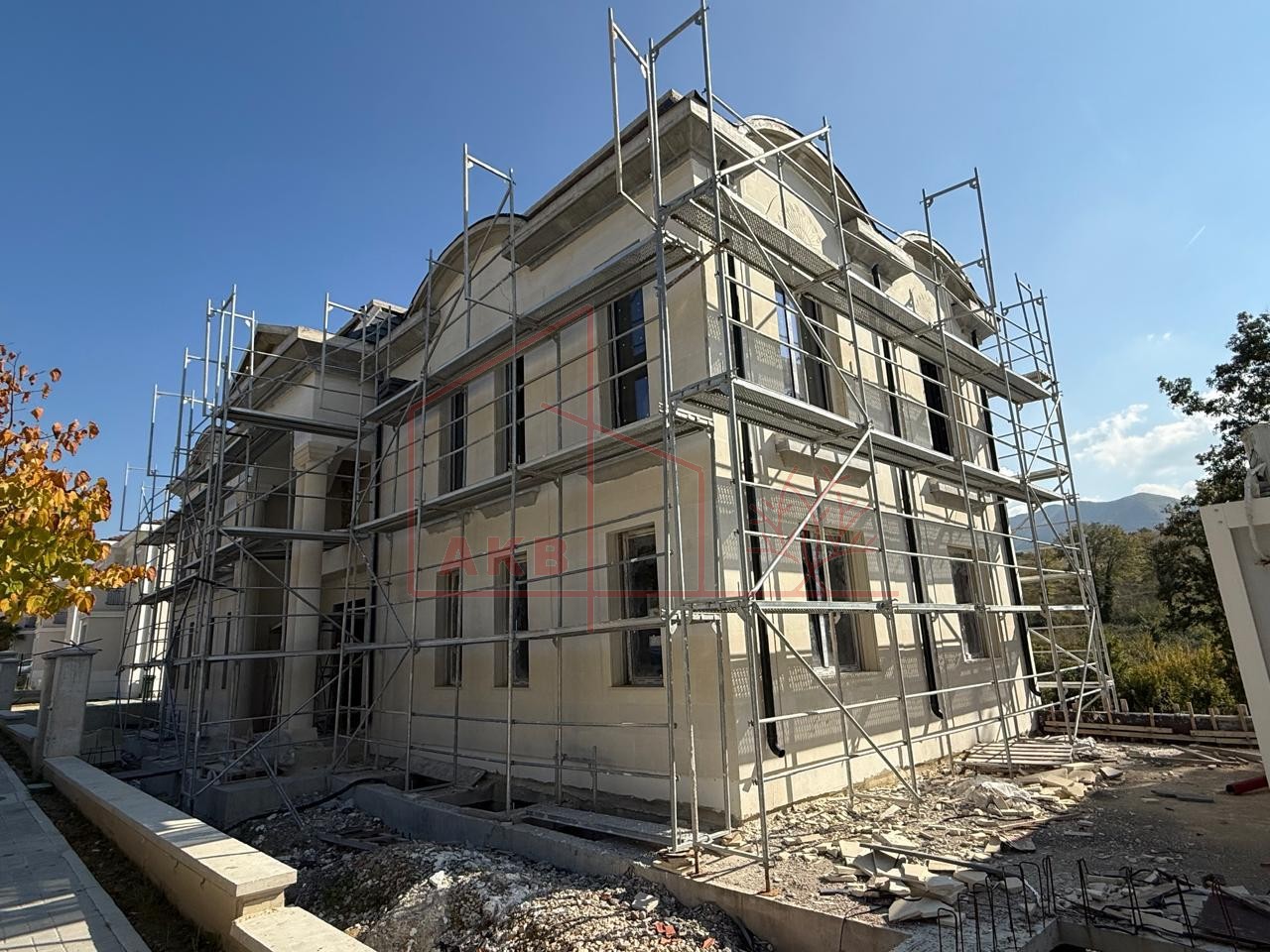 Hyrja kryesore është e theksuar me kolona dhe një verandë të mbuluar, duke krijuar një ambient mikpritës. Prona është e rrethuar dhe e aksesueshme lehtësisht nga rruga, ndërsa ambienti përreth është i qetë dhe i përshtatshëm për një jetesë komode.